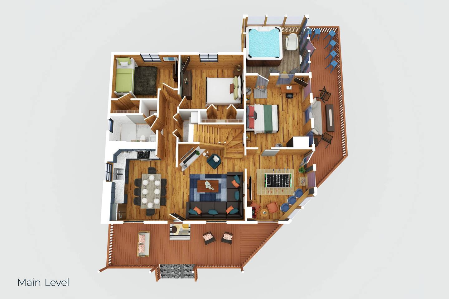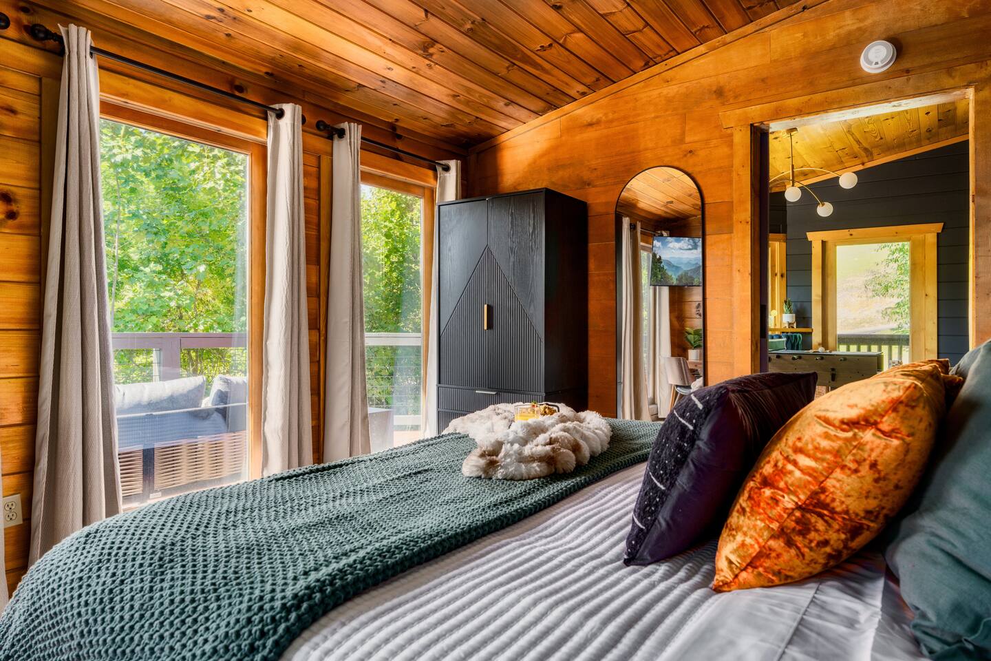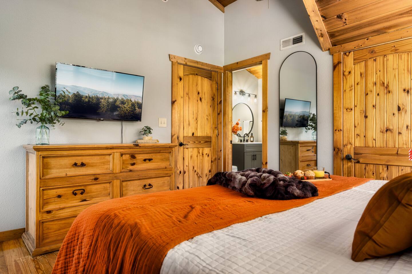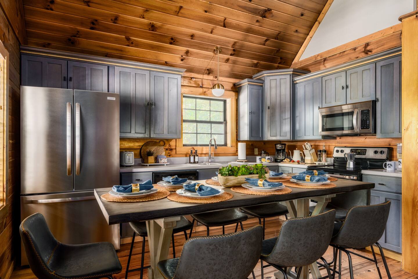 ~Prime Location~ Dreamhaven Den gives you the perfect mix of peace and proximity. Nestled in a quiet, gated community surrounded by trees, you’ll be just 3 miles from downtown Gatlinburg — close enough to enjoy all the shops, dining, and attractions, yet far enough to escape the crowds when you’re ready to unwind. You'll love... ~ Only 3 miles to downtown Gatlinburg’s restaurants, distilleries, and shops ~ Peaceful gated community with a seasonal outdoor pool ~ Wooded surroundings that feel private and serene ~ Just minutes to the Gatlinburg Welcome Center & Trolley park-and-ride for stress-free access to town and the National Park ~Open Living Space~ Gather in the heart of the cabin, where the spacious sectional invites cozy movie nights, late-night chats, or curling up by the fire after a day of exploring. The open layout makes it easy for everyone to stay connected — whether some are cooking, some are watching TV, or others are playing games at the table. You'll love... ~ Large sectional sofa for group seating ~ Gas fireplace (Oct–Mar) for mountain nights ~ 55" Roku TV for movies and shows ~ HDMI extension for easy connection of your own game console ~ Open-concept design for togetherness ~Fully Stocked Kitchen/Dining~ Cook, snack, and sip with ease in the fully stocked kitchen. Whether you’re making a big family breakfast before a hike or pouring wine for a late-night card game, everything you need is right at hand. The dining table is large enough to comfortably seat your group for meals or games. You'll love... ~ Full-size fridge, oven, stove, dishwasher, and microwave ~ Coffee connoisseur's dream with Keurig (hot/iced), drip maker, Chemex, French press, Italian espresso style coffee maker (Moka pot) and handheld frother wand ~ Starter supplies including salt and pepper grinders, olive oil, sugar, small creamers and various other spices ~ Cookware, bakeware, and utensils for family meals ~ Large dining table that seats 8 ~Comfortable Bedrooms~ At the end of the day, each bedroom offers a comfortable retreat where everyone can relax and recharge. Two king suites give plenty of privacy and comfort, while the queen and bunk rooms provide flexible options for families or groups of friends. You'll love... ~ Roku TVs and ceiling fans in every bedroom ~ Updated cozy luxe bedding ~ Bedroom #1 (Upstairs): King bed with ensuite bath + reading nook with twin pull-out chair for flexible sleeping options ~ Bedroom #2 (Main Level): King bed, large wall of windows overlooking gorgeous mountain views, dedicated workspace and private hot tub deck access ~ Bedroom #3 (Main Level): Queen bed with mountain mural near main living area ~ Bedroom #4 (Main Level): Twin-over-queen bunk with game stick with over 10,000+ retro games ~ Bathrooms: 2 total — step-in shower downstairs, bathtub upstairs ~Inviting Outdoor Spaces~ Step outside and let the mountains do the rest. Sip coffee on the porch swing, share cocktails around the fire table, or soak in the hot tub as the sun sets. With both lounge seating and bar-style seating, the deck is a natural gathering spot. You'll love... ~ Screened-in hot tub with mountain views and cozy swing chair ~ Fire table with lounge seating ~ Porch swing + rocking chairs for quiet mornings ~ Bar seating on the deck overlooking the view ~ Park-style charcoal grill for cookouts (guests supply their own charcoal) ~Fun Game Lounge~ Tucked away with a speakeasy vibe, this space is where fun happens. Play classic arcade games, challenge friends at foosball or ping pong, or spin records while sipping drinks at the bar. It’s perfect for rainy days or late-night hangouts. You'll love... ~ Ms. Pac-Man arcade machine with 12 classic games ~ Foosball/air hockey/ping pong combo table ~ Record player complete with a collection of classic records and Bluetooth speakers for music options ~ Lounge seating + smart TV + bar setup ~ Board and card games included House Rules: We want your stay at Dreamhaven Den to be as relaxing as possible. To keep things comfortable for everyone, please keep these simple rules in mind: ~ No pets (we love them, but this cabin is pet-free) ~ No smoking or parties — let’s keep the cabin fresh and peaceful ~ Please respect quiet hours (10pm - 8am) and our neighbors in this gated community ~ Children must be supervised around the hot tub and fire table
